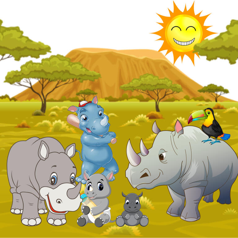 Long, long time ago or maybe not so long. Very far away, or perhaps very close, lived Rhinoceros Family. Members of Family was head of it Grate Father, best of all wife and Lovely Mother, the oldest son, always know everything better - Big Brother, middle, crazy and so easy going sister - Funny Sister and the youngest of all family BabyOne.